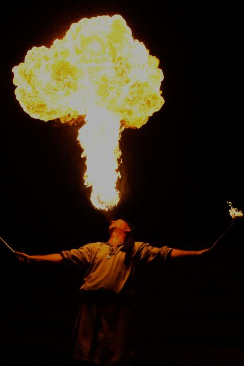 Zum Schluss werden bis zu 4 Meter hohe Flammen gespuckt