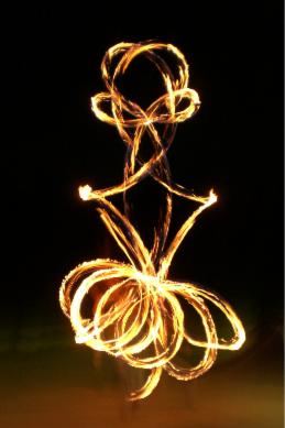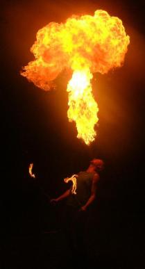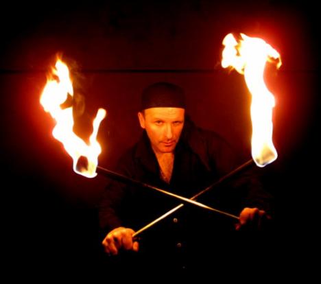 Achtung ! Fackeljonglage, Fackelswinging und Feuerspucken in Kombination mit Witz und Charme.