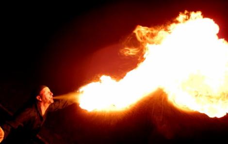 Zum Schluss werden bis zu 4 Meter hohe Flammen gespuckt !!